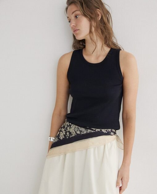 & Free ShippingTop básico de punto acanalado en negro, versátil y cómodo, ideal para crear looks sofisticados o casuales con total facilidad.